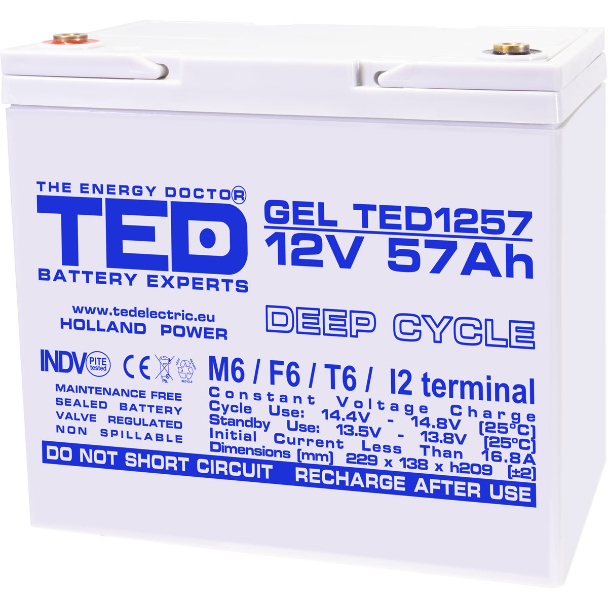 Acumulator GEL AGM VRLA F12 M6 57Ah 12V TED003393