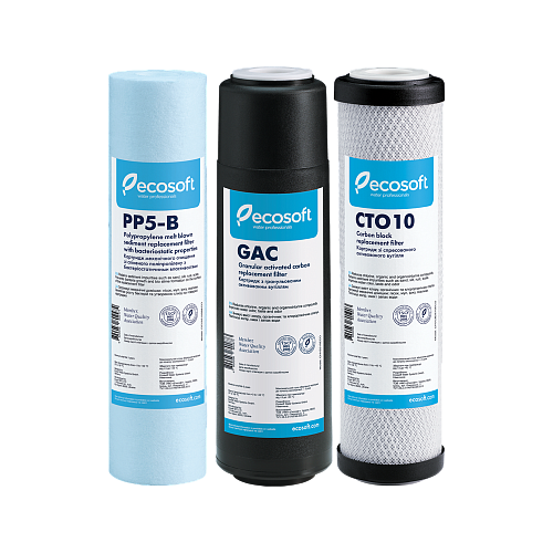 Setul include trei cartuse Ecosoft, care sunt necesare pentru prefiltrarea apei în fata membranei într-un filtru casnic cu tehnologie osmoza inversa.